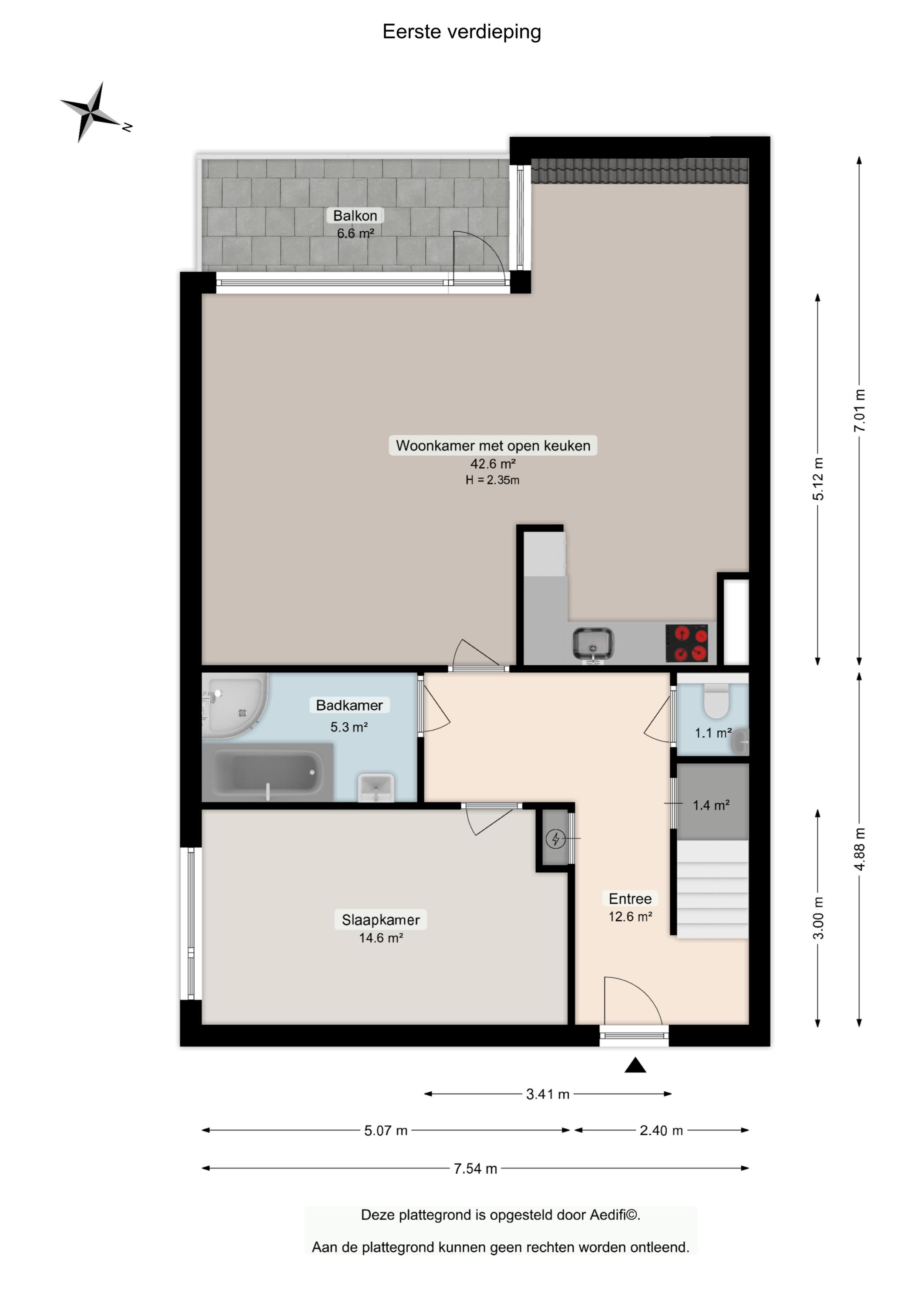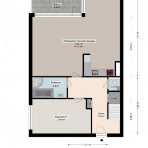 Via de entree bereikt u de centrale hal met toilet en meterkast. Deze hal biedt toegang tot de leuke en lichte woonkamer met nieuwe keuken. Direct aan deze gezellige ruimte grenst het terras op het zuidwesten.